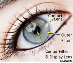 Le Pentagone a en effet commandé à Innovega un prototype de lentille de contact utilisant la technologie iOptik. Plus concrètement, ces lentilles intègrent un HUD, que les gamers connaissent bien ^^, ou en bon français un système d'affichage intégré permettant d'afficher directement sur la lentille diverses informations en sur-impression et en temps réel.